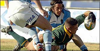 Pero de inmediato empezó la sucesión de errores que quizás pueden maquillarse cuando se enfrenta a seleccionados europeos, pero que ayer Sudáfrica no perdonó. Un penal de André Pretorius y un try de Stefan Terrblanche llevaron el marcador a 27 a 17 en apenas un par de movimientos.