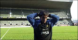 El wing argentino Gonzalo Camardón, durante el reconocimiento del campo que Los Pumas hicieron el viernes en el mítico Lansdowne Road, escenario del test del sábado ante Irlanda