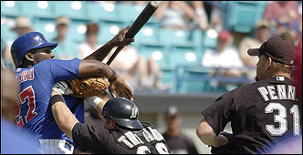 Penny golpeó a Guerrero el lunes con un pelotazo en la parte alta del pecho, en el primer inning. Guerrero, aún con un bate en la mano izquierda, dijo algunas palabras a Penny, mientras que el receptor Matt Treanor trataba de contener al jardinero del Todos Estrellas.