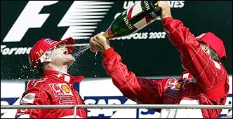 La escudería italiana sigue de fiesta: Barrichello obtuvo el Gran Premio de Indianápolis y se quedó con el subcampeonato mundial. Michael Schumacher, el campeón, escoltó a su compañero de equipo
