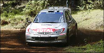 El finlandés Marcus Gronholm, ya consagrado campeón del mundo de la presente temporada, tomó la punta, mientras que el español Carlos Sainz y Richard Burns siguen peleando por el segundo puesto
