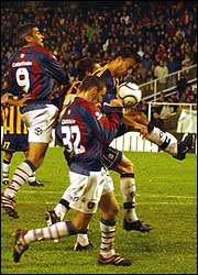 ROSARIO -- Rosario Central fue el mejor durante la totalidad del partido que sirvió para poner en marcha el torneo Apertura 2002, pero recién sobre la hora le ganó a San Lorenzo de Almagro 1-0 en el Gigante de Arroyito el viernes por la noche.