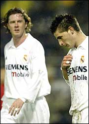 McManaman y Portillo tras uno de los goles merengues; tras ir ganando 3-1, dejaron que el Terrassa consiga el empate