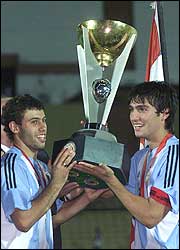 Javier Mascherano (izquierda) empezó, luego lo sucedió Hugo Colace; entre los dos levantan la copa