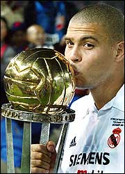 El astro brasileño Ronaldo con la Copa Intercontinental