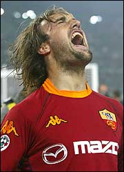 Gabriel Batistuta grita su gol en el derby romano ante la Lazio.