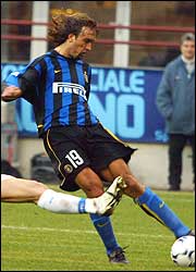 El argentino jugó en una posición más centrada en el ataque, mientras que su compañero Christian Vieri, autor de los tres tantos del triunfo, era quien más se movía por el arco del ataque en busca de espacios.