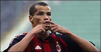 El brasileño Rivaldo acaba de convertir el gol que le dio al Milan el triunfo ante Piacenza y el liderato en soledad.