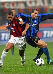 Justo en acciones de una acción de garra pudo el Inter empatar. Pero el remate de cabeza del uruguayo Alvaro Recoba (m.21), en una inmejorable posición, resultó demasiado centrado y facilitó la parada de Dida.