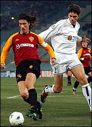 Por el grupo B, Valencia derrotó por 1-0 a la Roma en el mismísimo Olímpico. Roberto Ayala, que no jugó por Liga ante Málaga por estar suspendido, fue lo más seguro de una defensa compacta. Mauricio Pellegrino, que convirtió un gol el sábado, también cumplió con su labor desde el arranque.