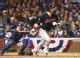 El segunda base de los Indios Jason Kipnis celebra tras conectar su jonrón de tres carreras en la séptima entrada ante los Cachorros en el Juego 4 de la Serie Mundial 2016 en el Wrigley Field.