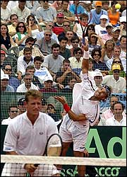 Saca Lucas Arnold, espera David Nalnadian. Argentina consiguió el tercer punto y definió la serie contra Alemania