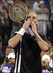 "Es sorprendente, creo que se me había olvidado lo que se sentía", dijo Agassi, quien cumplirá 33 años el martes. "Había mucho nerviosismo esta noche".