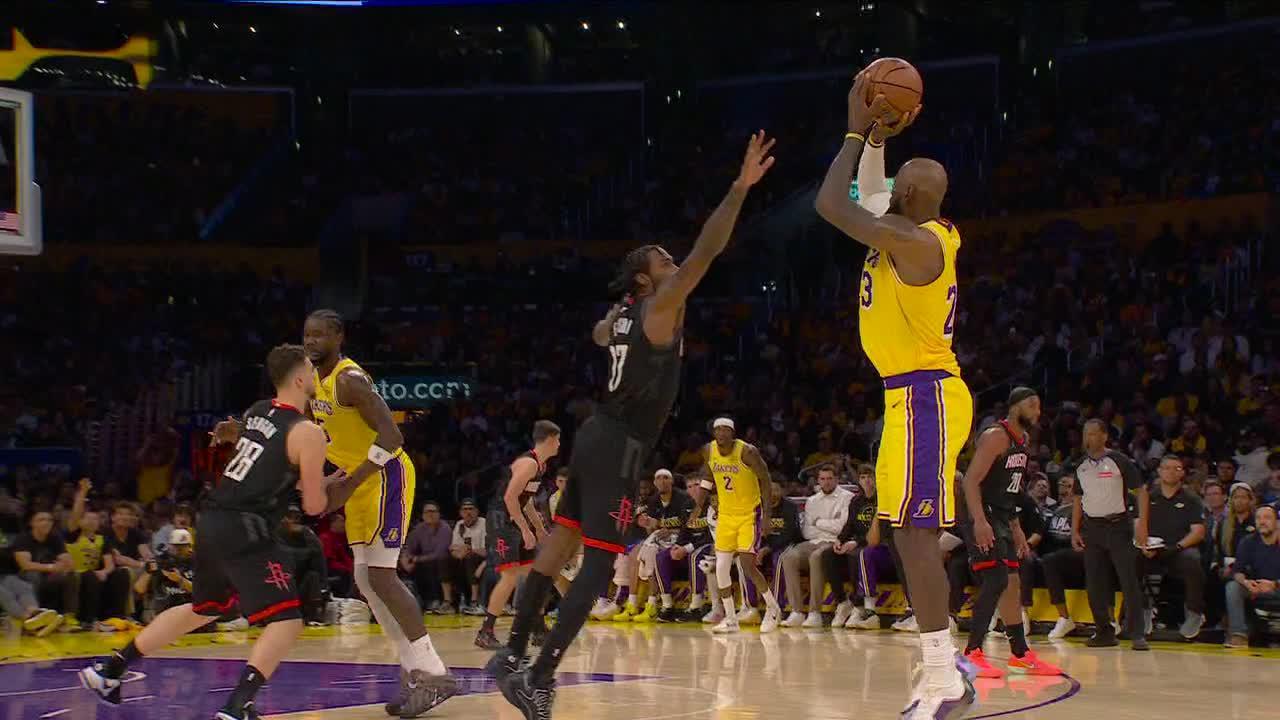 LeBron James y Luke Kennard conectan triples consecutivos que encienden a los Lakers y les dan una cómoda ventaja frente a los Rockets.