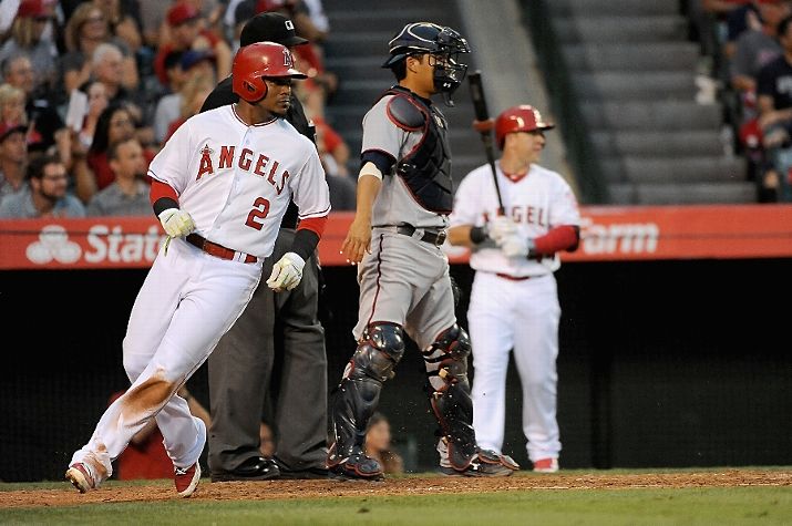 ANAHEIM, CA - JULY 21: Erick Aybar #2 of the Los Angeles Angels of Anaheim scores on an RBI single hit by Chris Iannetta #17 (not pictured) at the bottom of the second inning during a game against the Minnesota Twins at Angel Stadium of Anaheim on July 21, 2015 in Anaheim, California. (Photo by Jonathan Moore/Getty Images)