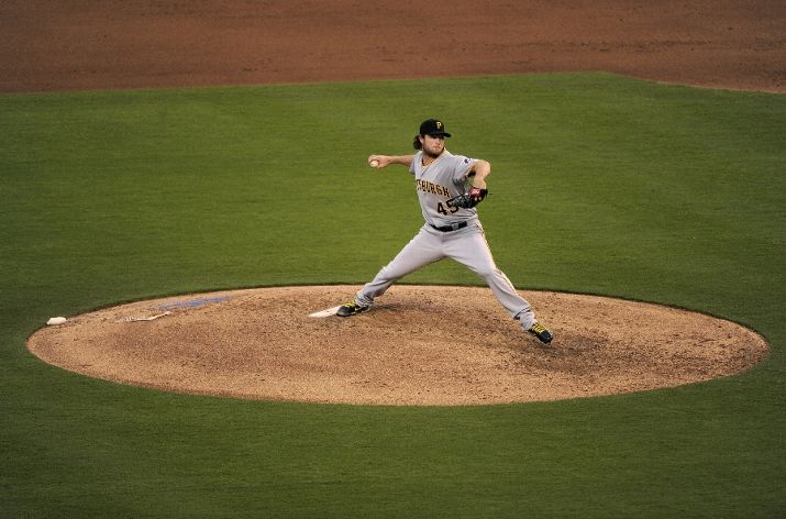 KANSAS CITY, MO - JULY 21: Gerrit Cole #45 of the Pittsburgh Pirates throws in the fourth inning against the Kansas City Royals at Kauffman Stadium on July 21, 2015 in Kansas City, Missouri. (Photo by Ed Zurga/Getty Images)