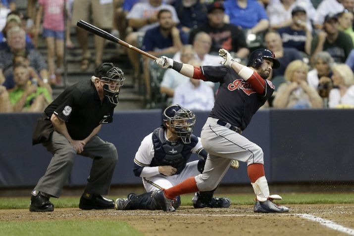MILWAUKEE, WI - JULY 21: Jason Kipnis #22 of the Cleveland Indians hits a single in the fifth inning against the Milwaukee Brewers during the Interleague game at Miller Park on July 21, 2015 in Milwaukee, Wisconsin. (Photo by Mike McGinnis/Getty Images)