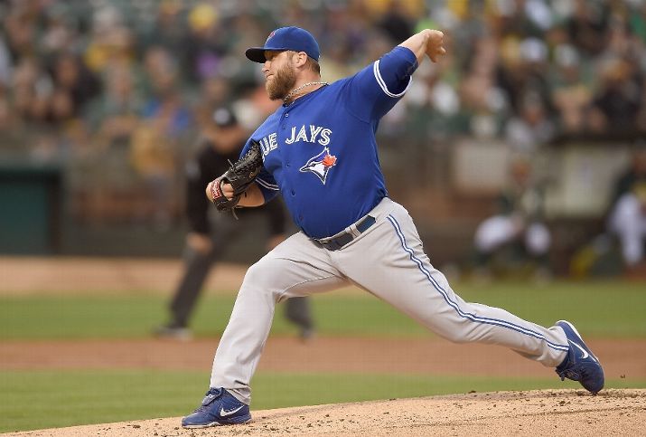 OAKLAND, CA - JULY 21: Mark Buehrle #56 of the Toronto Blue Jays pitches against the Oakland Athletics in the bottom of the first inning at O.co Coliseum on July 21, 2015 in Oakland, California. (Photo by Thearon W. Henderson/Getty Images)