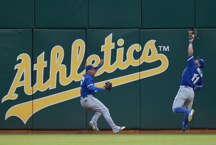 OAKLAND, CA - JULY 21: Kevin Pillar #11 of the Toronto Blue Jays runs down a fly ball in the gap taking a hit away from Ben Zobrist #18 of the Oakland Athletics in the bottom of the third inning at O.co Coliseum on July 21, 2015 in Oakland, California. (Photo by Thearon W. Henderson/Getty Images)