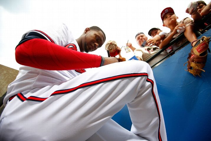 ATLANTA, GA - JULY 21: Julio Teheran #49 of the Atlanta Braves signs autographs prior to their game against the Los Angeles Dodgers at Turner Field on July 21, 2015 in Atlanta, Georgia. (Photo by Kevin C. Cox/Getty Images)