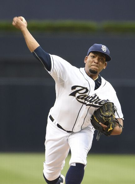 SAN DIEGO, CA - JULY 21: Odrisamer Despaigne #40 of the San Diego Padres pitches during the first inning of a baseball game against the San Francisco Giants at Petco Park July 21, 2015 in San Diego, California. (Photo by Denis Poroy/Getty Images)