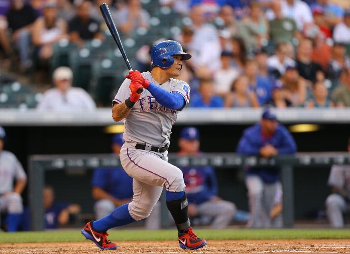 DENVER, CO - JULY 21: Shin-Soo Choo #17 of the Texas Rangers watches his RBI double in the second inning against the Colorado Rockies during Interleague play at Coors Field on July 21, 2015 in Denver, Colorado. (Photo by Justin Edmonds/Getty Images)