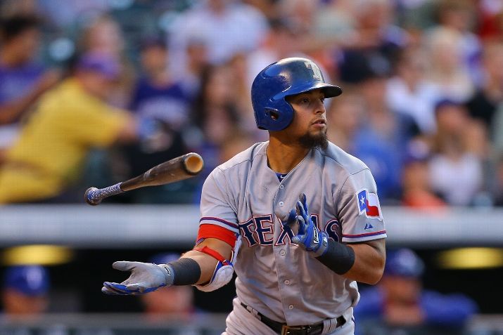 DENVER, CO - JULY 21: Rougned Odor #12 of the Texas Rangers watches his double in the second inning against the Colorado Rockies during Interleague play at Coors Field on July 21, 2015 in Denver, Colorado. (Photo by Justin Edmonds/Getty Images)