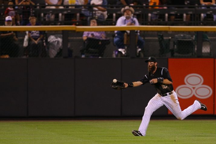 DENVER, CO - JULY 21: Center fielder Charlie Blackmon #19 of the Colorado Rockies makes a catch for the first out of the sixth inning against the Texas Rangers during Interleague play at Coors Field on July 21, 2015 in Denver, Colorado. (Photo by Justin Edmonds/Getty Images)