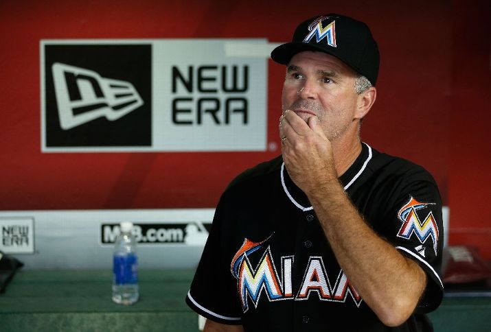PHOENIX, AZ - JULY 21: Manager Dan Jennings #26 of the Miami Marlins watches from the dugout during the MLB game against the Arizona Diamondbacks at Chase Field on July 21, 2015 in Phoenix, Arizona. (Photo by Christian Petersen/Getty Images)