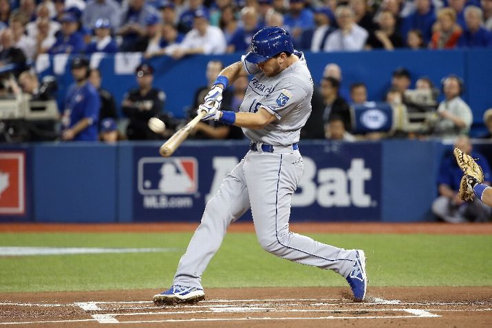 TORONTO, ON - OCTOBER 20: Ben Zobrist #18 of the Kansas City Royals hits a two-run home run in the first inning against the Toronto Blue Jays during game four of the American League Championship Series at Rogers Centre on October 20, 2015 in Toronto, Canada. (Photo by Tom Szczerbowski/Getty Images)