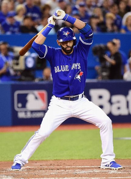 TORONTO, ON - OCTOBER 20: Jose Bautista #19 of the Toronto Blue Jays strikes out looking in the first inning against the Kansas City Royals during game four of the American League Championship Series at Rogers Centre on October 20, 2015 in Toronto, Canada. (Photo by Harry How/Getty Images)