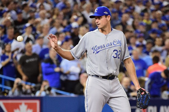 TORONTO, ON - OCTOBER 20: Chris Young #32 of the Kansas City Royals gets the ball back in the third inning against the Toronto Blue Jays during game four of the American League Championship Series at Rogers Centre on October 20, 2015 in Toronto, Canada. (Photo by Harry How/Getty Images)