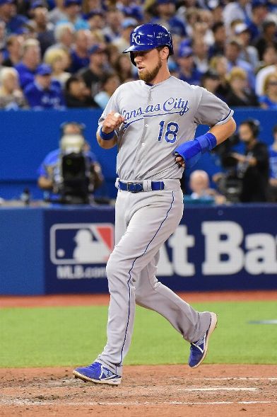 TORONTO, ON - OCTOBER 20: Ben Zobrist #18 of the Kansas City Royals scores a run in the seventh inning against the Toronto Blue Jays during game four of the American League Championship Series at Rogers Centre on October 20, 2015 in Toronto, Canada. (Photo by Harry How/Getty Images)