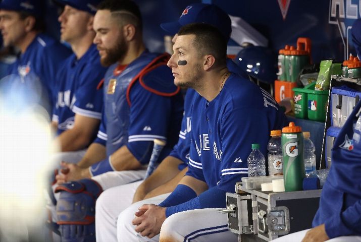 TORONTO, ON - OCTOBER 20: Troy Tulowitzki #2 of the Toronto Blue Jays sits in the dugout in the eighth inning against the Kansas City Royals during game four of the American League Championship Series at Rogers Centre on October 20, 2015 in Toronto, Canada. (Photo by Tom Szczerbowski/Getty Images)