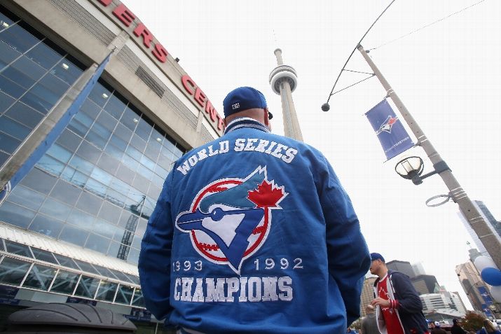 TORONTO, ON - OCTOBER 20: A fan waits outside the stadium before the game between the Kansas City Royals and the Toronto Blue Jays during game four of the American League Championship Series at Rogers Centre on October 20, 2015 in Toronto, Canada. (Photo by Tom Szczerbowski/Getty Images)