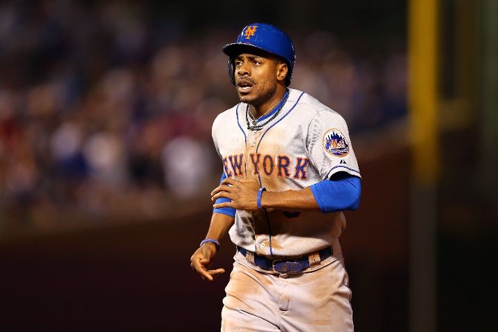 CHICAGO, IL - OCTOBER 20: Curtis Granderson #3 of the New York Mets runs back to the dugout after being tagged out at second base in the first inning against the Chicago Cubs during game three of the 2015 MLB National League Championship Series at Wrigley Field on October 20, 2015 in Chicago, Illinois. (Photo by Elsa/Getty Images)