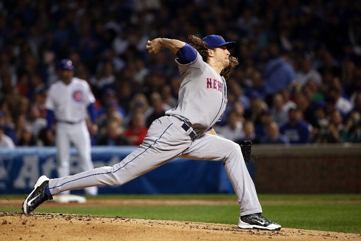 CHICAGO, IL - OCTOBER 20: Jacob deGrom #48 of the New York Mets throws a pitch in the first inning against the Chicago Cubs during game three of the 2015 MLB National League Championship Series at Wrigley Field on October 20, 2015 in Chicago, Illinois. (Photo by Jonathan Daniel/Getty Images)
