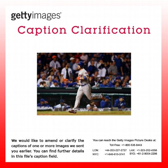 CAPTION CORRECTION: Please be advised that the pitcher who gave up the double that scored Wright was misidentified in the caption of image 493490586. It was Justin Grimm #52 of the Chicago Cubs. CHICAGO, IL - OCTOBER 20: David Wright #5 of the New York Mets scores on a double off the bat of Yoenis Cespedes #52 of the New York Mets in the seventh inning against Justin Grimm #52 of the Chicago Cubs during game three of the 2015 MLB National League Championship Series at Wrigley Field on October 20, 2015 in Chicago, Illinois. (Photo by Elsa/Getty Images) Getty Images regrets any inconvenience.