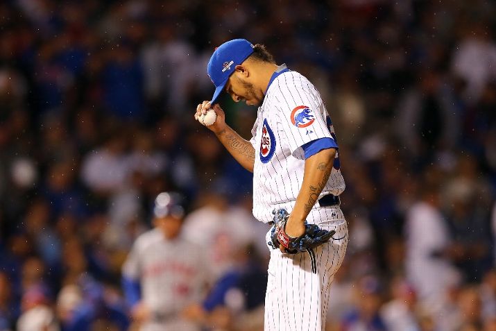 CHICAGO, IL - OCTOBER 20: Hector Rondon #56 of the Chicago Cubs prepares to pitch in the ninth inning against the New York Mets during game three of the 2015 MLB National League Championship Series at Wrigley Field on October 20, 2015 in Chicago, Illinois. (Photo by Elsa/Getty Images)