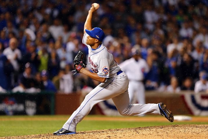 CHICAGO, IL - OCTOBER 20: Jeurys Familia #27 of the New York Mets throws a pitch in the ninth inning against the Chicago Cubs during game three of the 2015 MLB National League Championship Series at Wrigley Field on October 20, 2015 in Chicago, Illinois. (Photo by Elsa/Getty Images)