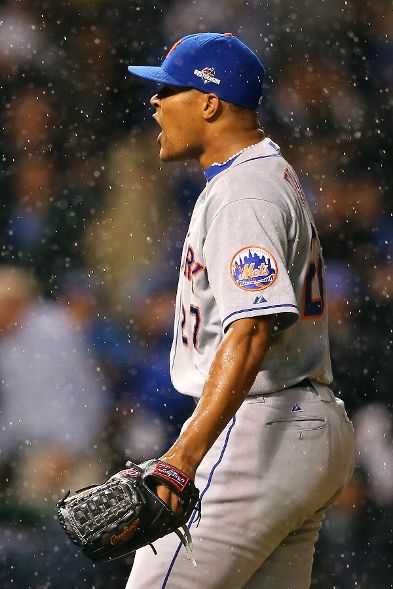 CHICAGO, IL - OCTOBER 20: Jeurys Familia #27 of the New York Mets celebrates after defeating the Chicago Cubs in game three of the 2015 MLB National League Championship Series at Wrigley Field on October 20, 2015 in Chicago, Illinois. The Mets defeated the Cubs with a score of 5 to 2. (Photo by Elsa/Getty Images)