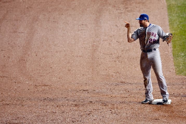 CHICAGO, IL - OCTOBER 20: Daniel Murphy #28 of the New York Mets celebrates after defeating the Chicago Cubs in game three of the 2015 MLB National League Championship Series at Wrigley Field on October 20, 2015 in Chicago, Illinois. The Mets defeated the Cubs with a score of 5 to 2. (Photo by David Banks/Getty Images)