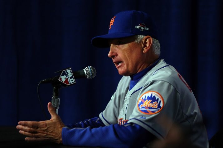 CHICAGO, IL - OCTOBER 20: manager Terry Collins #10 of the New York Mets speaks during a press conference after game three of the 2015 MLB National League Championship Series at Wrigley Field on October 20, 2015 in Chicago, Illinois. The Mets defeated the Cubs with a score of 5 to 2. (Photo by Elsa/Getty Images)
