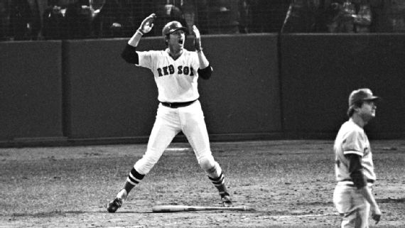 Si no fuese por la icónica -- y accidental - imagen de Carlton Fisk moviendo sus brazos para que la pelota se quedara en terreno bueno, es posible que quizás nunca hubiésemos visto el lance del bate famoso de José Bautista, u otros incontables gestos de celebración. Con los Medias Rojas al borde de la eliminación en la parte baja de la entrada 12 del Juego 6 de la Serie Mundial, Fisk conectó el segundo envío que le hiciera el lanzador de los Rojos de Cincinnati Pat Darcy por la línea del jardín izquierdo. Parecía que la pelota se iría a terreno de foul, pero el receptor comenzó a saltar y a agitar sus brazos hacia la línea de primera base, esperando que la pelota se quedara en terreno bueno. La bola aterrizó justo en la parte de adentro del poste de foul del jardín izquierdo, terminándo el maratón de béisbol que duró cuatro horas a las 12:33 a.m ET, dándole a los Medias Rojas la victoria 7-6 y forzando un séptimo y decisivo partido en el Clásico de Otoño.