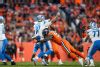 DENVER, CO - DECEMBER 22: Phillip Lindsay #30 of the Denver Broncos breaks away from Jalen Reeves-Maybin #44 of the Detroit Lions on a fourth quarter touchdown run at Empower Field on December 22, 2019 in Denver, Colorado. (Photo by Dustin Bradford/Getty Images)