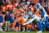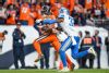 DENVER, CO - DECEMBER 22: DaeSean Hamilton #17 of the Denver Broncos is tackled by Justin Coleman #27 of the Detroit Lions after a third quarter catch at Empower Field on December 22, 2019 in Denver, Colorado. (Photo by Dustin Bradford/Getty Images)