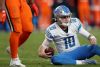 DENVER, COLORADO - DECEMBER 22: Quarterback David Blough #10 of the Detroit Lions is sacked against the Denver Broncos in the fourth quarter at Empower Field at Mile High on December 22, 2019 in Denver, Colorado. (Photo by Matthew Stockman/Getty Images)