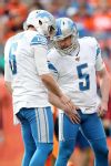 DENVER, COLORADO - DECEMBER 22: Holder Sam Martin #6 and place kicker Matt Prater #5 of the Detroit Lions celebrate a field goal against the Denver Broncos in the first quarter at Empower Field at Mile High on December 22, 2019 in Denver, Colorado. (Photo by Matthew Stockman/Getty Images)