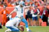 DENVER, COLORADO - DECEMBER 22: Sam Martin #6 holds as Matt Prater #5 of the Detroit Lions kicks a field goal against the Denver Broncos in the first quarter at Empower Field at Mile High on December 22, 2019 in Denver, Colorado. (Photo by Matthew Stockman/Getty Images)