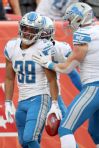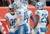 DENVER, COLORADO - DECEMBER 22: Jamal Agnew #39 of the Detroit Lions celebrates as he leaves the field after returning a punt for a touchdown against the Denver Broncos in the second at Empower Field at Mile High on December 22, 2019 in Denver, Colorado. (Photo by Matthew Stockman/Getty Images)